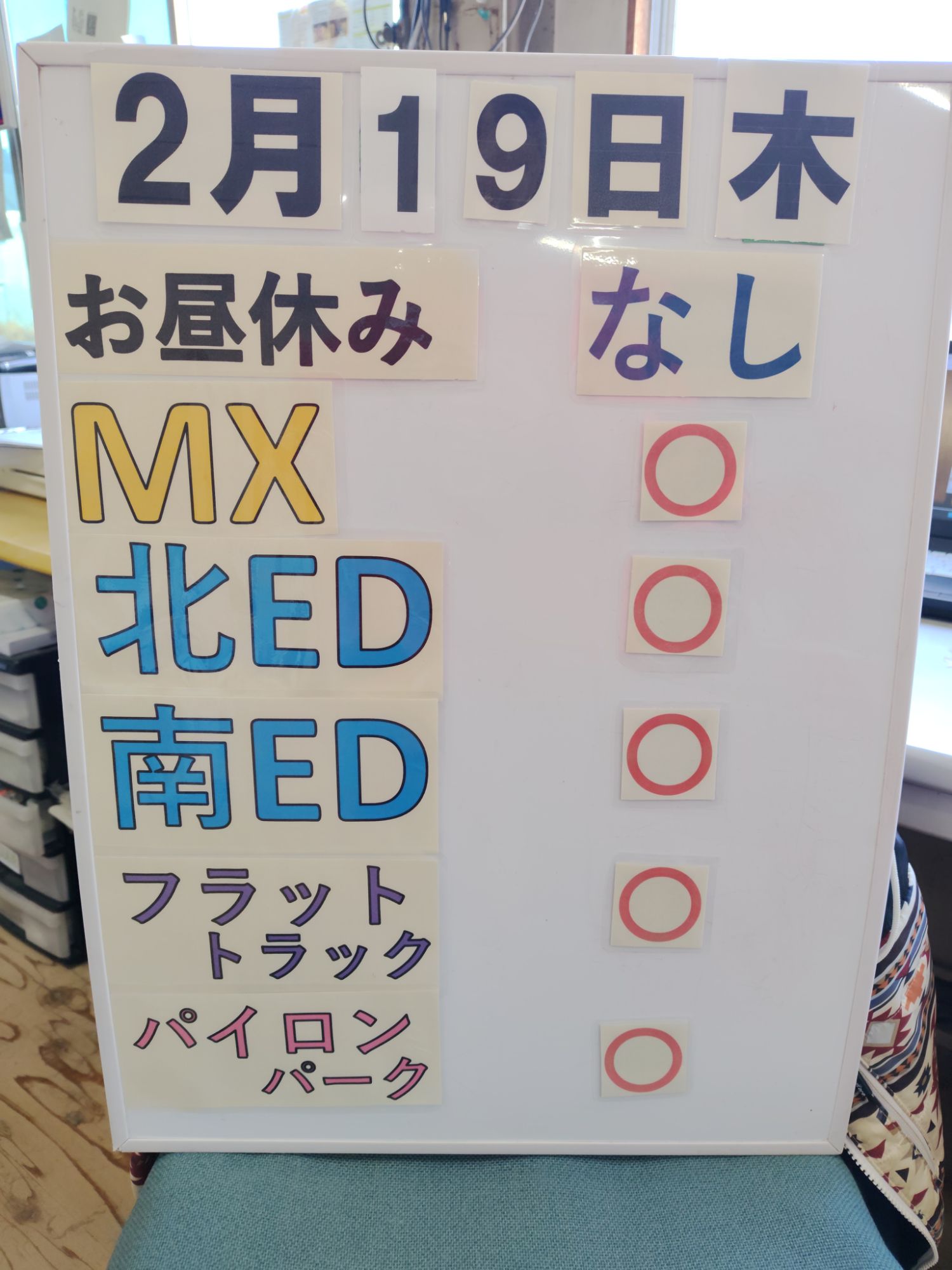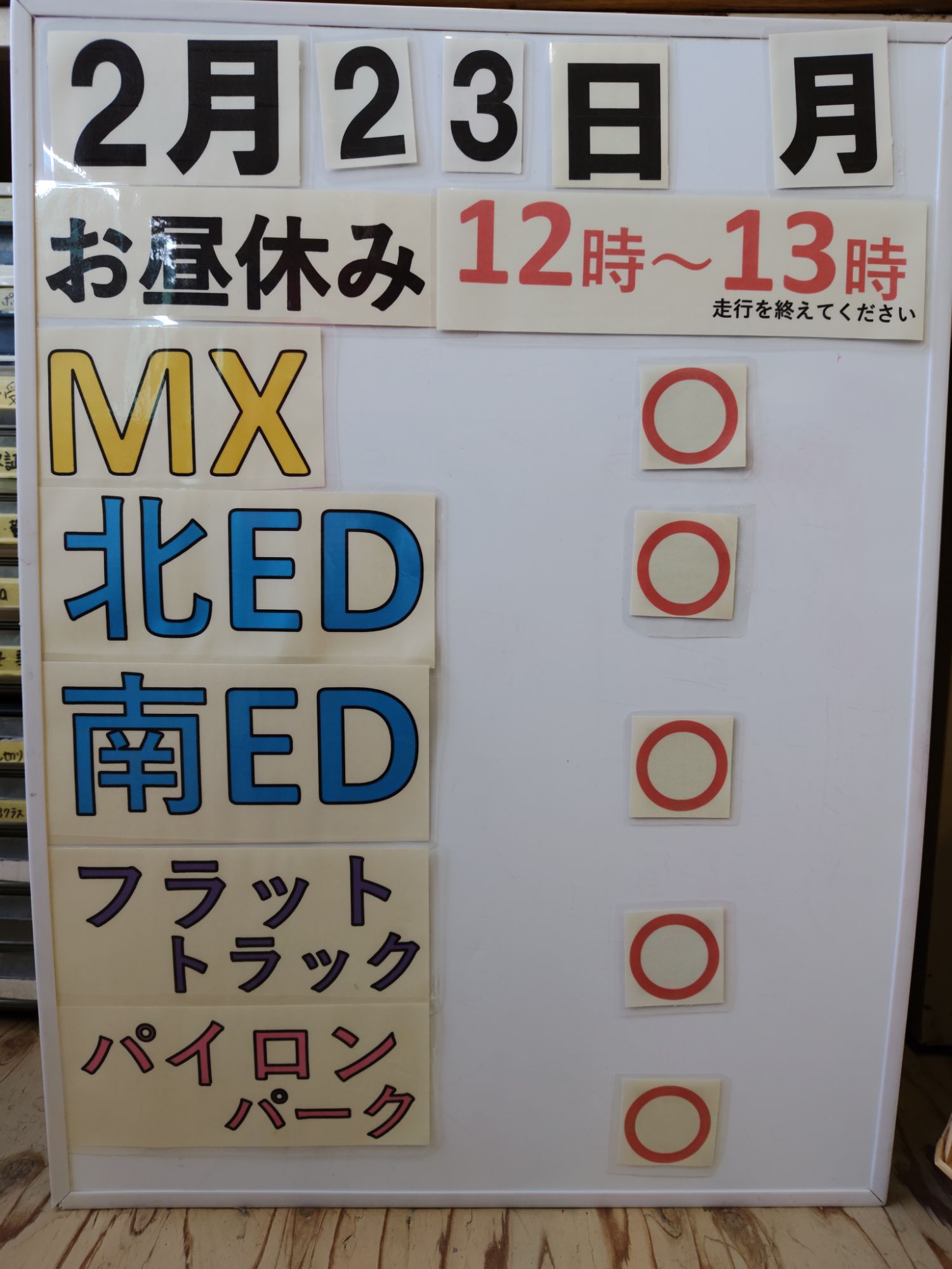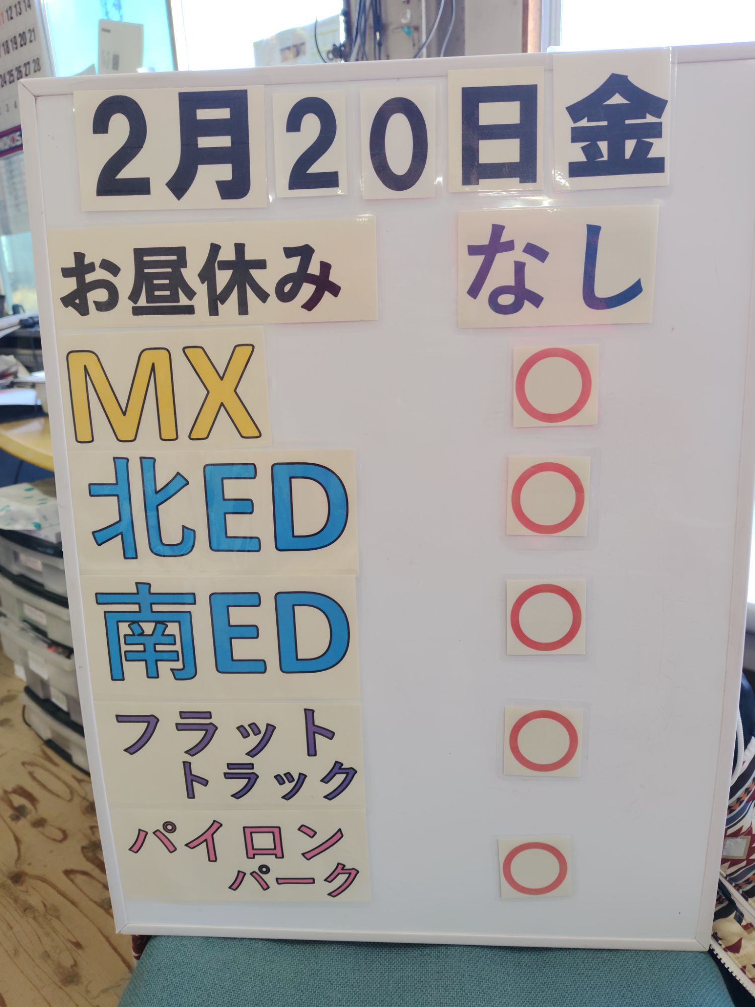 にて営業案内をお知らせ致します数日間MX駐車場鉄塔奥側は整地作業のため立ち入り禁止となります。
