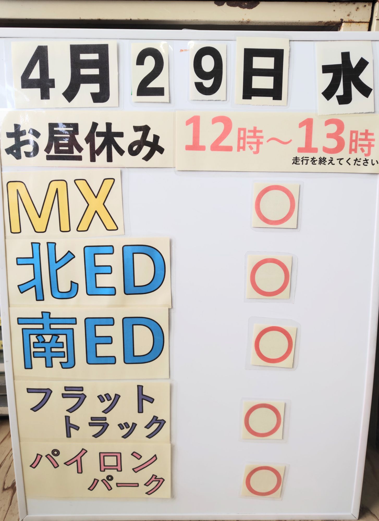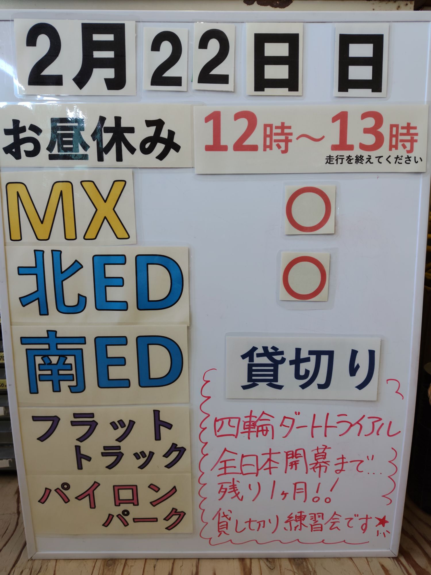 いつもご利用頂きありがとうございます。 先日南コース内にて二輪タイヤの不法投棄が発生しました。 皆様の大事なコースです。 コース整備、運営にも影響します。 ルール、マナーを守りご利用頂けると幸いです。 (続きを読む)