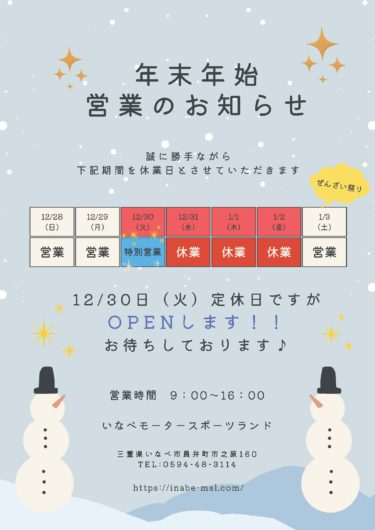 水色 白 冬 雪 年末年始 休業 お知らせ A4